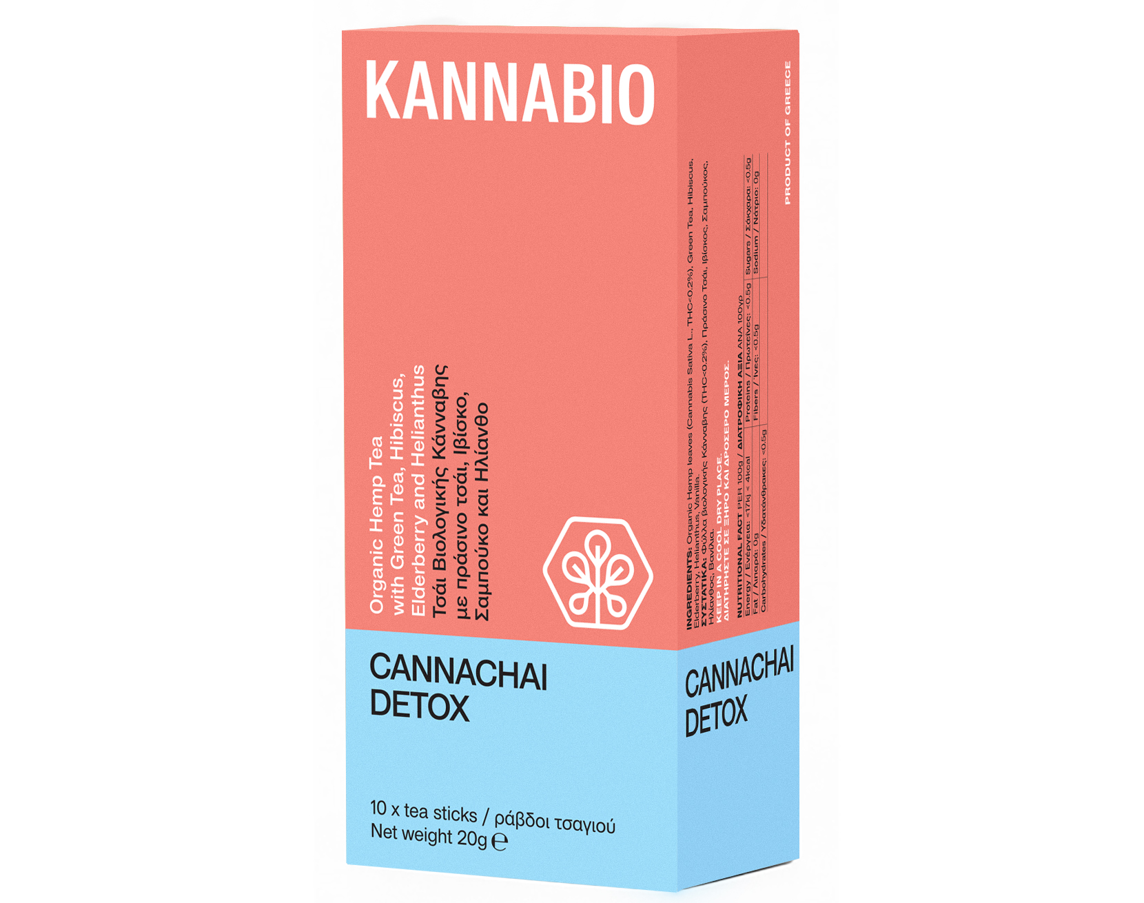 Το CANNACHAI DETOX από την ΚΑΝΝΑΒΙΟ συνδυάζει μείγμα βιολογικής κάνναβης με πράσινο τσάι, μαζί με αρωματικά και θεραπευτικά βότανα που εκτός από υπέροχη γεύση προσδίδουν συγκεκριμένες λειτουργικές ιδιότητες και ισχυρή αντιοξειδωτική δράση. Τα φύλλα και οι τριμμένοι ανθοί βιολογικής κάνναβης, σε συνδυασμό με πράσινο τσάι, ιβίσκο, σαμπούκο και ηλίανθο, δημιουργούν ένα αρωματικό μείγμα τσαγιού με πλούσια γεύση και στοχευμένη λειτουργικότητα.