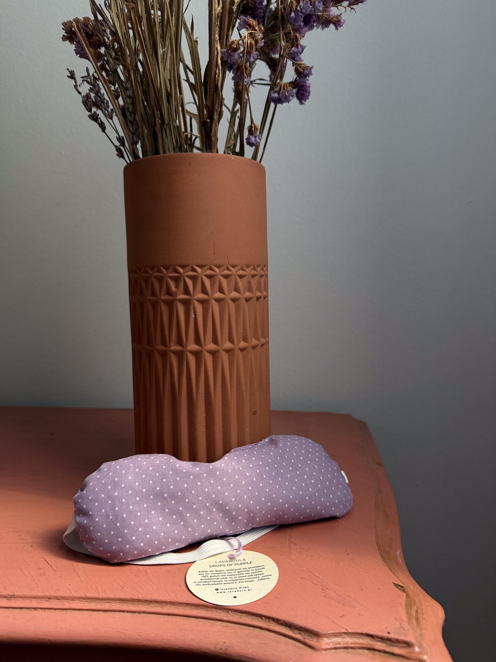 Συστατικά: Τριμμένη αποξηραμένη βιολογική & ελληνική λεβάντα σε 100% βαμβακερό ύφασμα.