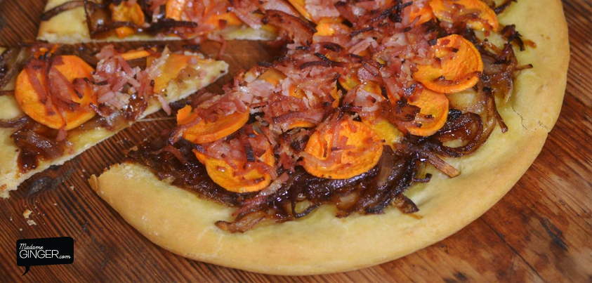 6. Σπιτική πίτσα με γλυκοπατάτα, bacon και καραμελωμένα κρεμμύδια