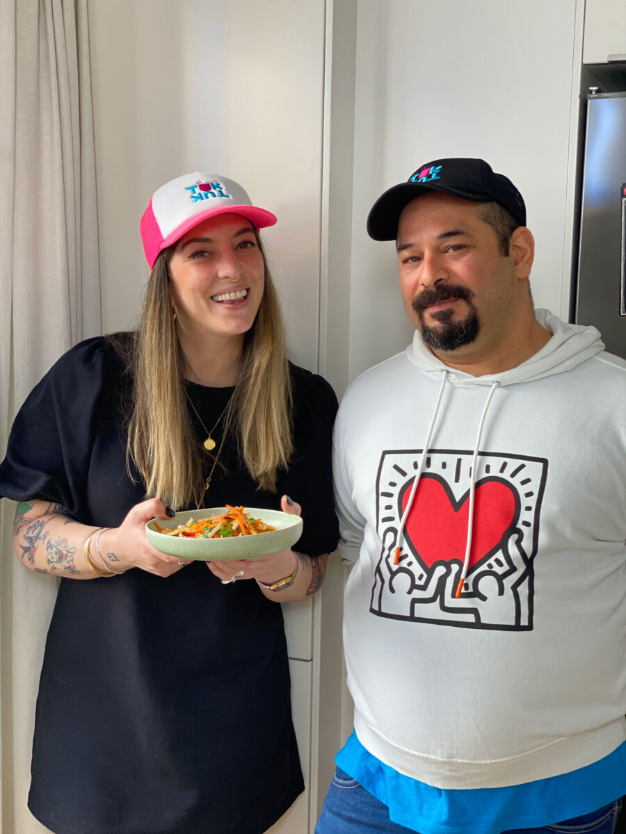 Με τον Μπάμπη από το TUK TUK – το πιο αγαπημένο μου Ταϊλανδέζικο στην Αθήνα-, γνωριστήκαμε σε ένα επεισόδιο #EatLikeALocal και καταλάβαμε αμέσως ότι μιλάμε την ίδια γλώσσα. Αγαπηθήκαμε, λατρευτήκαμε, εγώ απολαμβάνω πολύ συχνά τα πιάτα του και σ’ένα αυθόρμητο τηλεφώνημα έπεσε η ιδέα να έρθει στην κουζίνα μας και να μαγειρέψει κάτι για τα gingerάκια. Έτσι μια ηλιόλουστη μέρα, έσκασε ο Μπάμπης στο MG Food Studio, άνοιξε τα τέλεια οργανωμένα μπολάκια με τα υλικά του και μέσα σε 10 λεπτά μας έφτιαξε μία σαλάτα όνειρο!