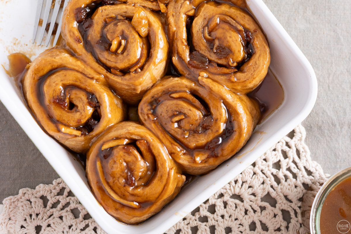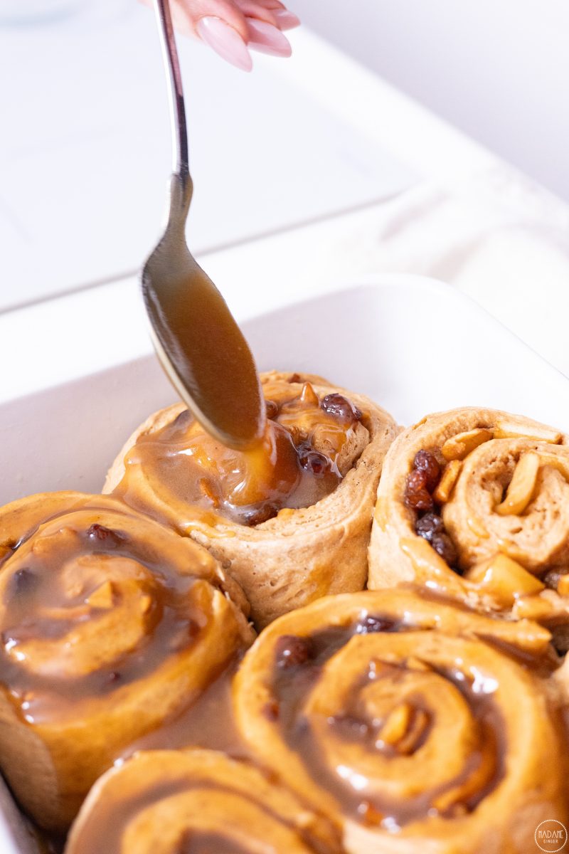 Cinnamon rolls με καραμελωμένα μήλα και σταφίδες