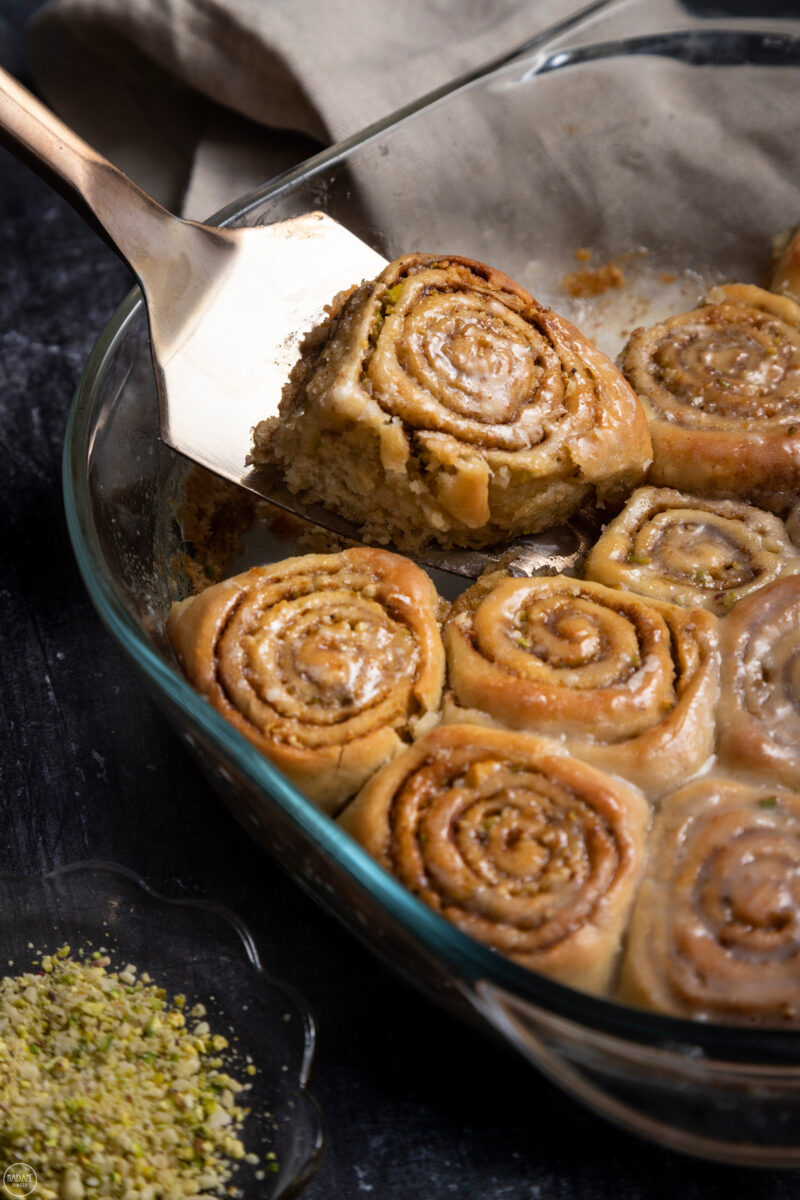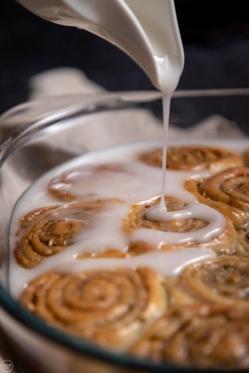 Η φαντασίωση έγινε πραγματικότητα όταν είδα το αφράτο ζυμαράκι μου να στριφογυρίζει στον κάδο της κουζινομηχανής μου και να ζυμώνεται απαλά με τον γάντζο ζύμης. Vegan, ζουμερά και τέλεια γλασαρισμένα, τα cinnamon rolls μου τρώγονται με 1-2 μπουκιές και ξαφνιάζουν ευχάριστα με την τραγανή γέμιση τους από φιστίκι Αιγίνης και αμύγδαλα. Δες ολόκληρη την συνταγή βήμα-βήμα σε video στα highlights του Instagram και στο IGTV, φτιάξε τα δικά σου vegan cinnamon rolls, ανέβασε την δημιουργία σου σε Instagram story και κάνε mention @madamegingercom για να τα θαυμάσουμε και εμείς!