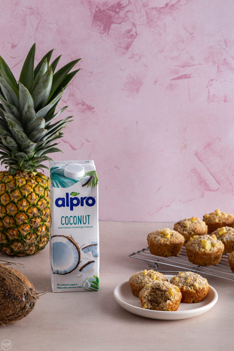 Ας συμφωνήσουμε όλοι μαζί ότι τα muffins είναι γενικώς λίγο βαρετά και κάπως ξεπερασμένα θα μπορούσα να πω. Και τότε γιατί μας κάνεις muffins βρε Madame Ginger μου ρωτάς διαβάζοντας αυτές τις γραμμές έχοντας κι εσύ τα δίκια σου. Σου κάνω muffins gingerάκι μου γιατί θέλω να σου δείξω ότι το muffin το σωστό δεν είναι ποτέ ξεπερασμένο και να σου δείξω με την σημερινή μου συνταγάρα ότι δεν είναι και καθόλου βαρετό. Αφράτο & ζουμερό muffin καρύδας -με ολόκληρα κομμάτια ανανά, ρόφημα καρύδας Alpro και ινδοκάρυδο, lime για ακόμα περισσότερο άρωμα – και φυσικά απόλυτα θρεπτικό αφού είναι vegan, γεμάτο πρωτεΐνη από τον λιναρόσπορο και ασβέστιο και βιταμίνες από το ρόφημα καρύδας. Λάτρεψέ το όσο εμείς και πάρτο μαζί σου παντού ως το απόλυτο σνακ!