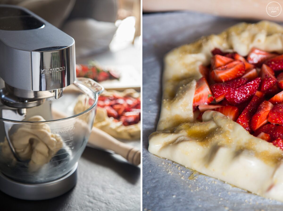 Η κροστάτα που λέτε, δεν είναι τίποτα περισσότερο παρά μια μαγική, crispy ζύμη –που την έφτιαξα μέσα σε 5 λεπτά με τον έρωτα-Kenwood με το εξάρτημα του γάντζου- η οποία αγκαλιάζει ηδονικά φρέσκες φράουλες με ζάχαρη και λεμόνι. Ότι πρέπει δηλαδή για το καλοκαίρι! Αν δεν θέλετε φράουλες, βάλτε κεράσια, βάλτε ροδάκινα ή βερίκοκα. Βάλτε ότι θυμίζει το δικό σας καλοκαίρι τελοσπάντων…