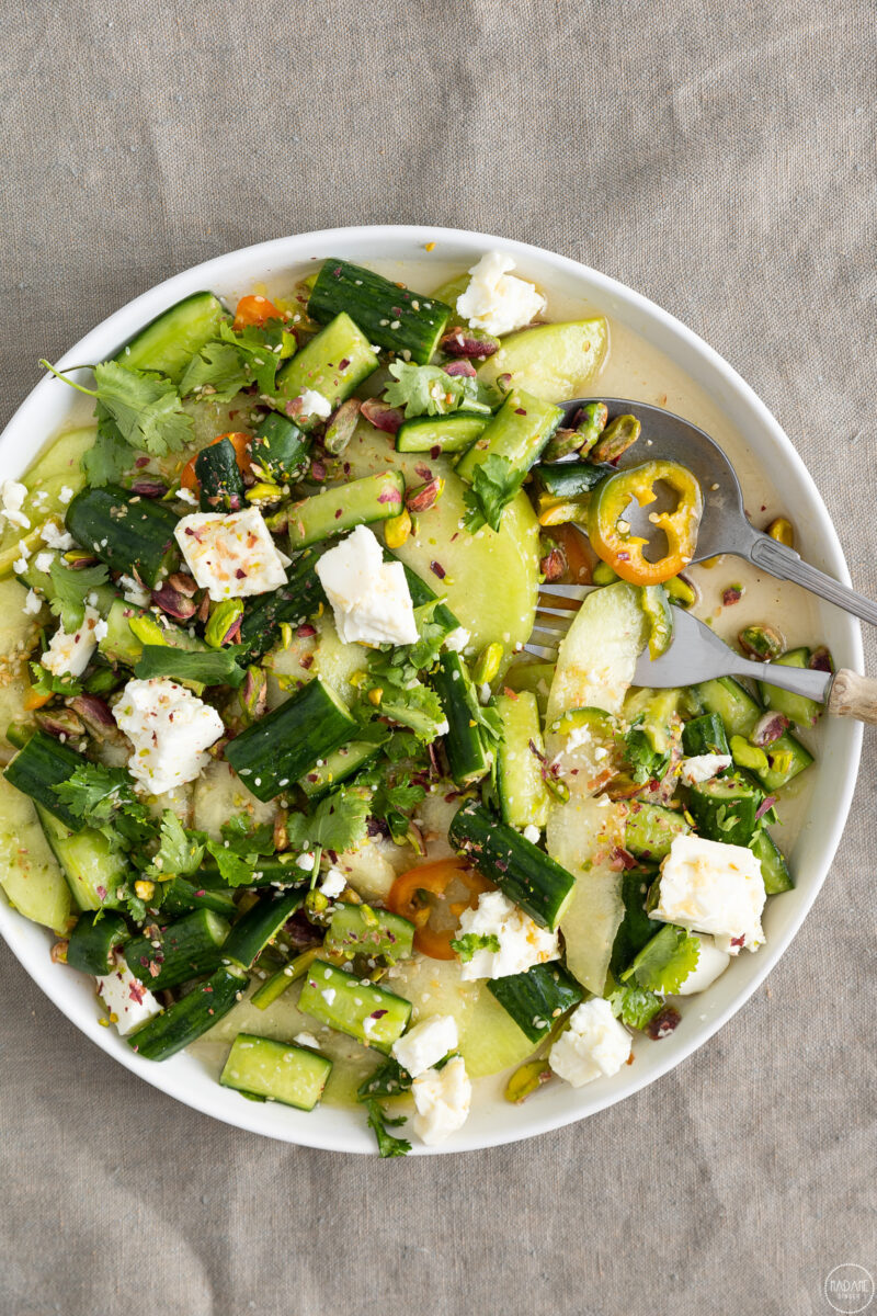 Δροσιστική, καλοκαιρινή σαλάτα με αγγούρι & πεπόνι χωρίς μαγείρεμα