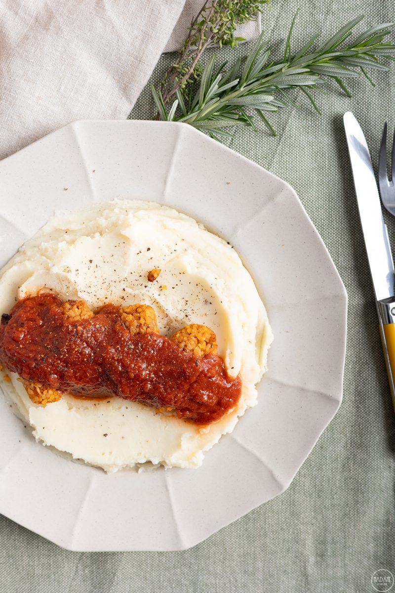 5)Μόλις είναι έτοιμα τα σουτζουκάκια τα σερβίρουμε με πουρέ πατάτας και τη σάλτσα ντομάτας.