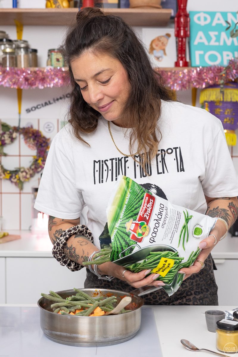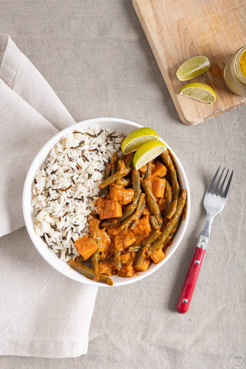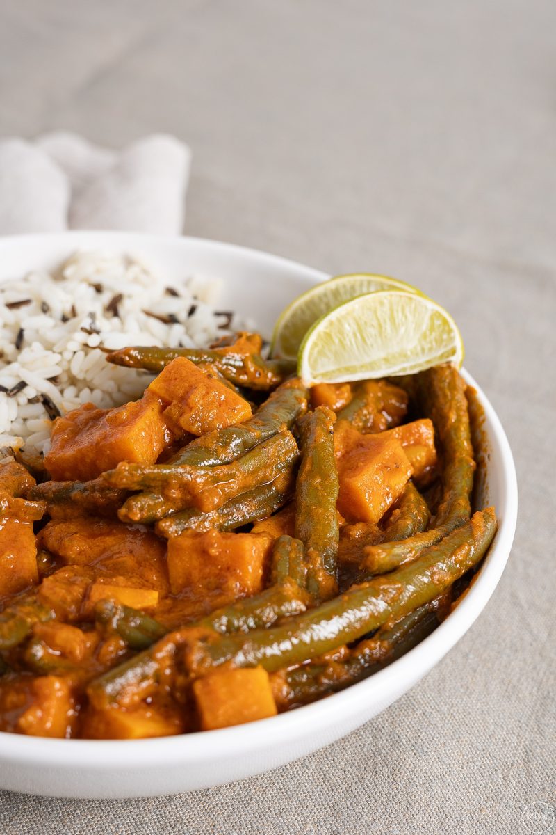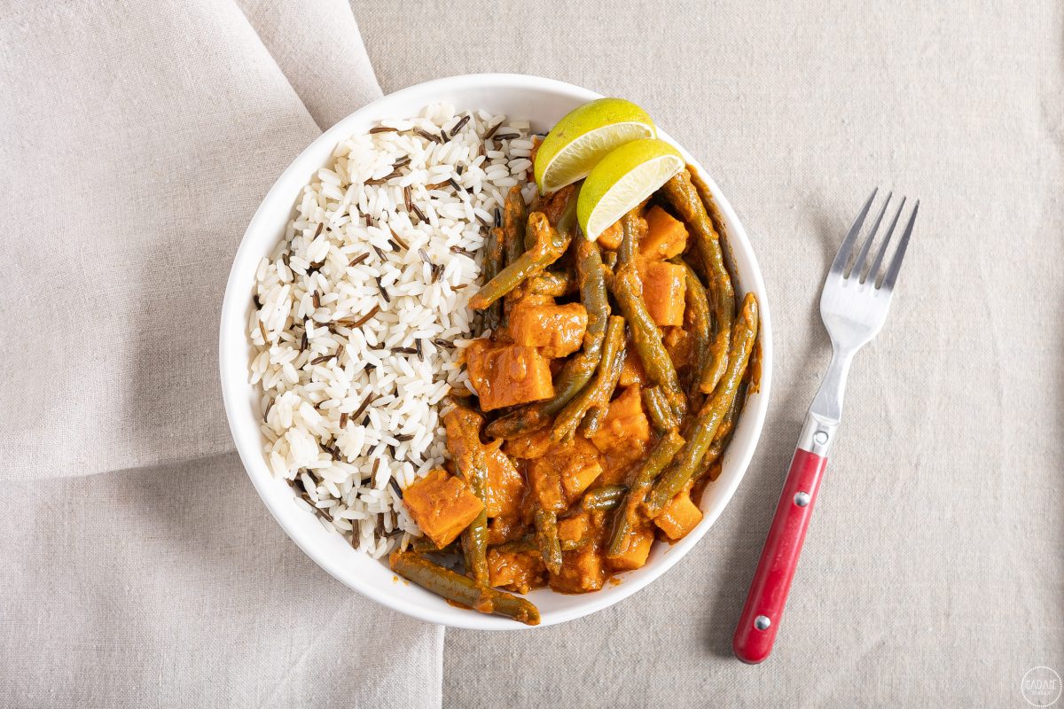 Κάρυ με φασολάκια και γλυκοπατάτα