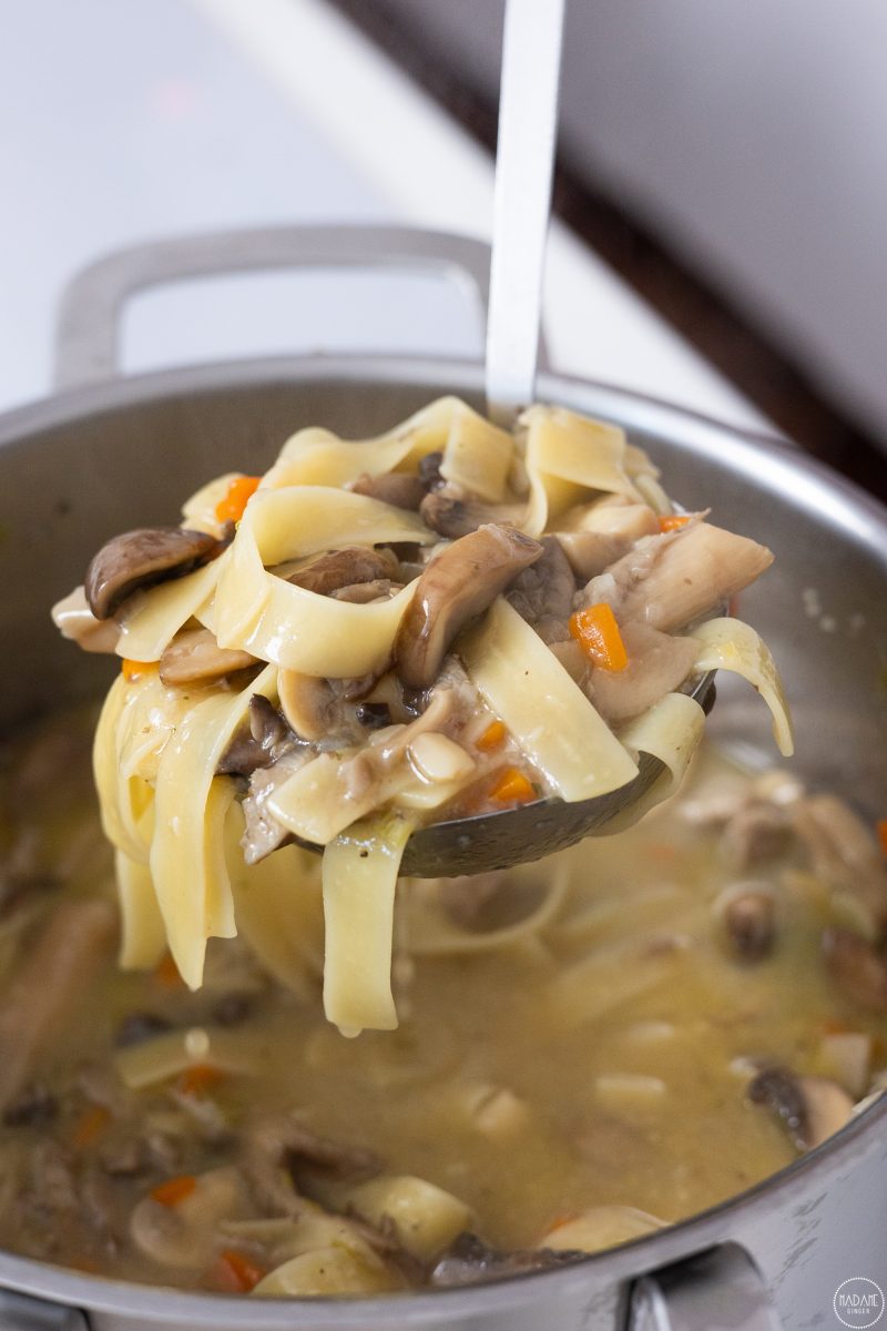 4)Περιχύνουμε με το ζωμό που φτιάξαμε, αφήνουμε να πάρει βράση και μόλις βράσει, προσθέτουμε τις χυλοπίτες, φρεσκοτριμμένο πιπέρι, μισοκλείνουμε το καπάκι και μαγειρεύουμε για 10-15 λεπτά ή μέχρι να έχουν μαγειρευτεί οι χυλοπίτες.