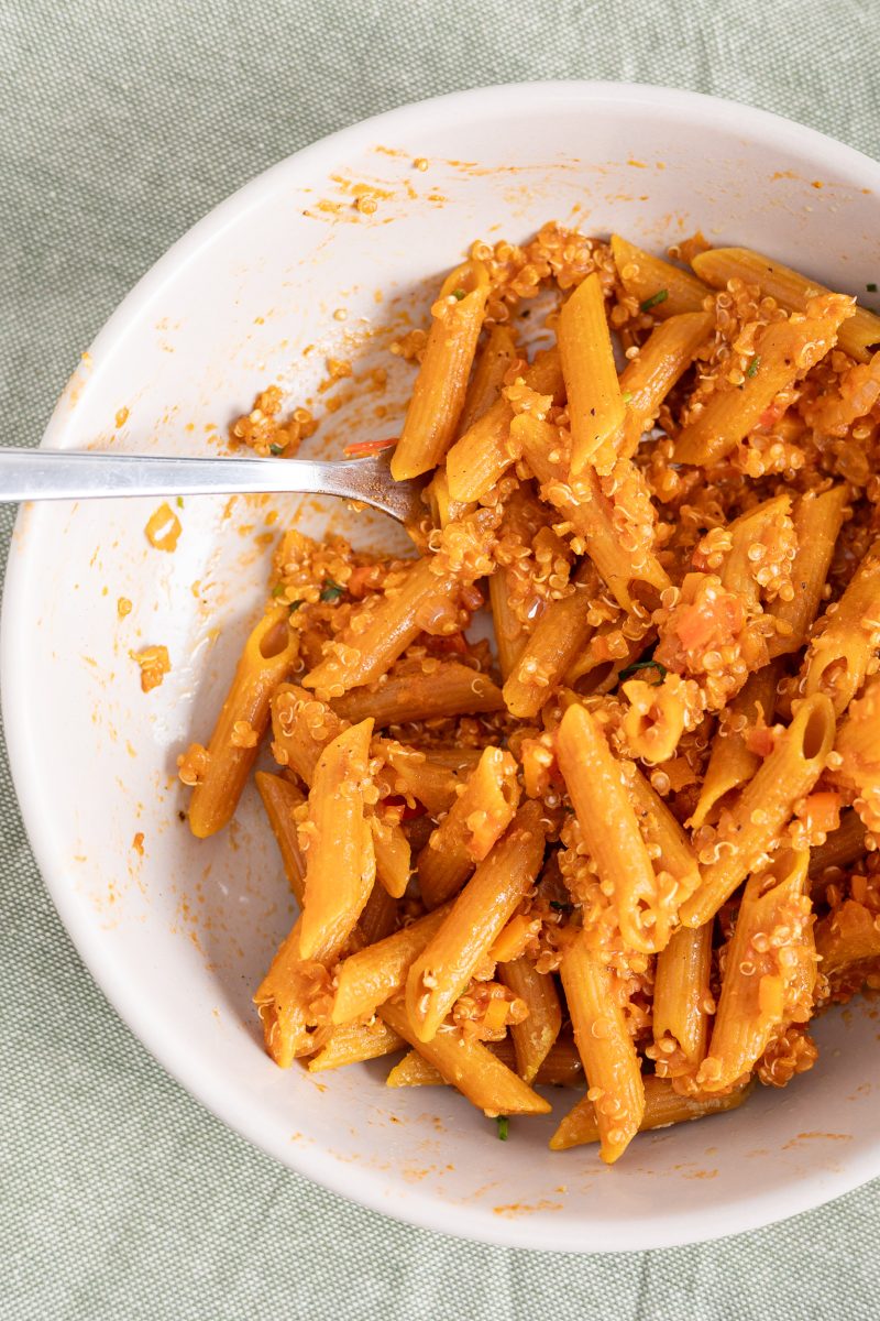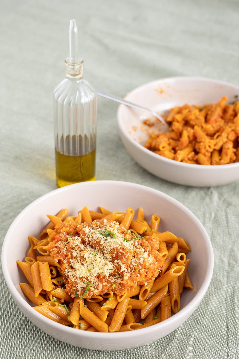 Η πρωτεϊνική μακαρονάδα με κιμά κινόα είναι ένα γεύμα απλό και γεμάτο ενέργεια. Ο κιμάς κινόα δίνει υπέροχη υφή σε κάθε μπουκιά και ταιριάζει τέλεια με τα ζυμαρικά MISKO Protein Πέννε Ριγκάτε. Ιδανικό για στιγμές που χρειάζεσαι ένα γεύμα φουλ στην πρωτεΐνη αλλά και πεντανόστιμο!