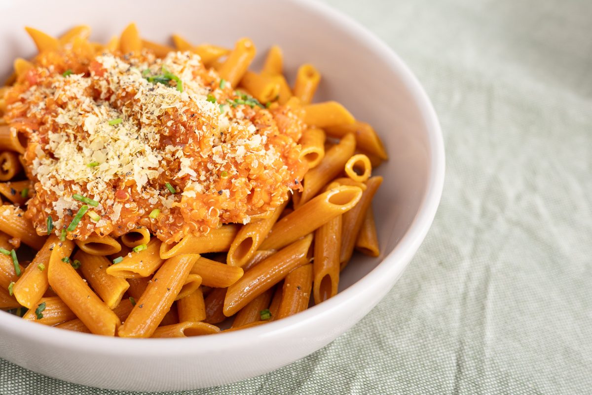 Η πρωτεϊνική μακαρονάδα με κιμά κινόα είναι ένα γεύμα απλό και γεμάτο ενέργεια. Ο κιμάς κινόα δίνει υπέροχη υφή σε κάθε μπουκιά και ταιριάζει τέλεια με τα ζυμαρικά MISKO Protein Πέννε Ριγκάτε. Ιδανικό για στιγμές που χρειάζεσαι ένα γεύμα φουλ στην πρωτεΐνη αλλά και πεντανόστιμο!