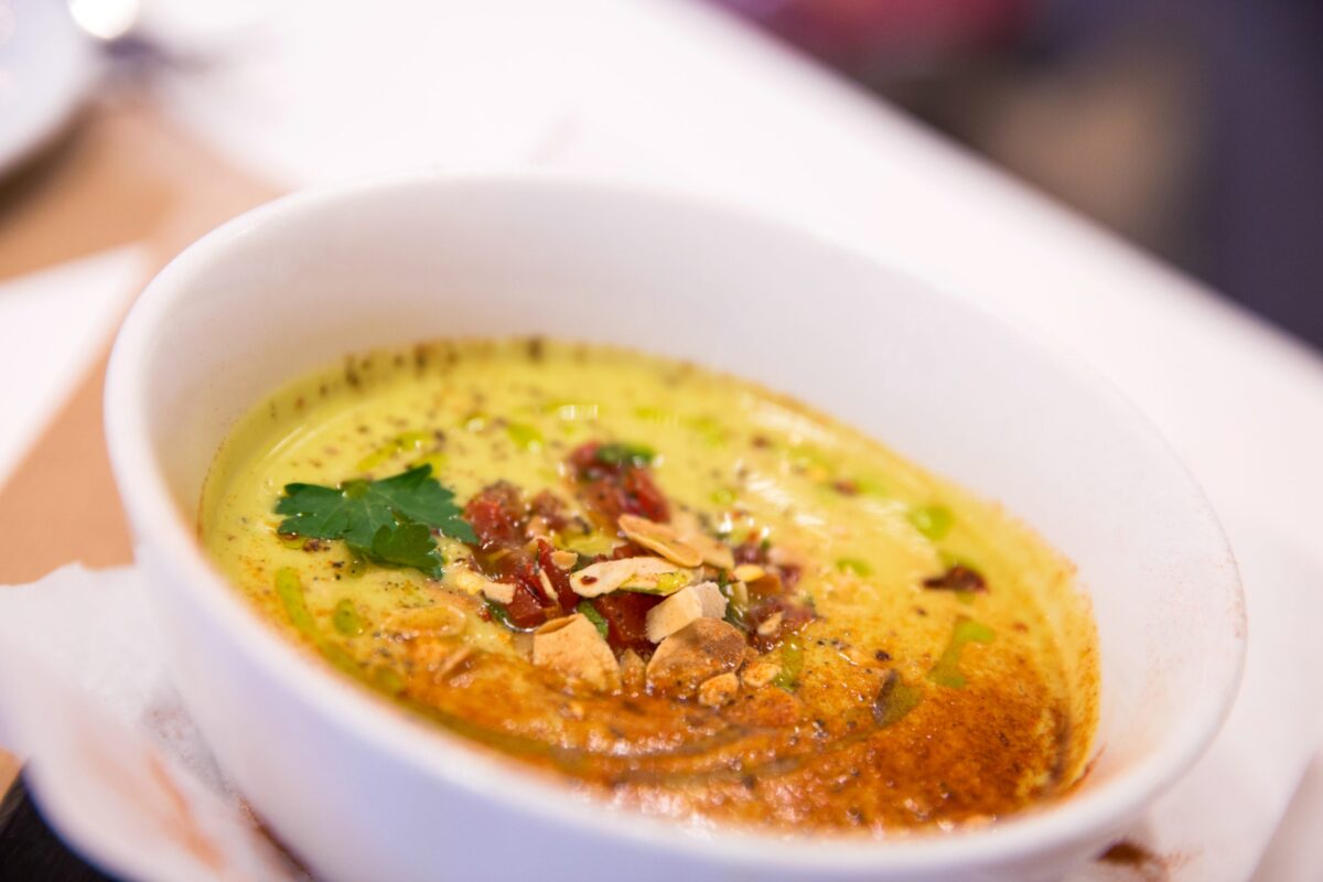 Από τα κυρίως πιάτα, ξετρελάθηκα με δύο πιάτα: Το κριθαρότο με τα λαχανικά (crunchy όπως τους αξίζει) την σάλτσα από ψητά ντοματίνια και το κατσικίσιο τυρί αλλά και με το κοτόπουλο μπουτάκι μαριναρισμένο σε γάλα καρύδας που συνδυάζει άψογα κάσιους και καυτερό ginger με δροσερό ρύζι μπασμάτι.